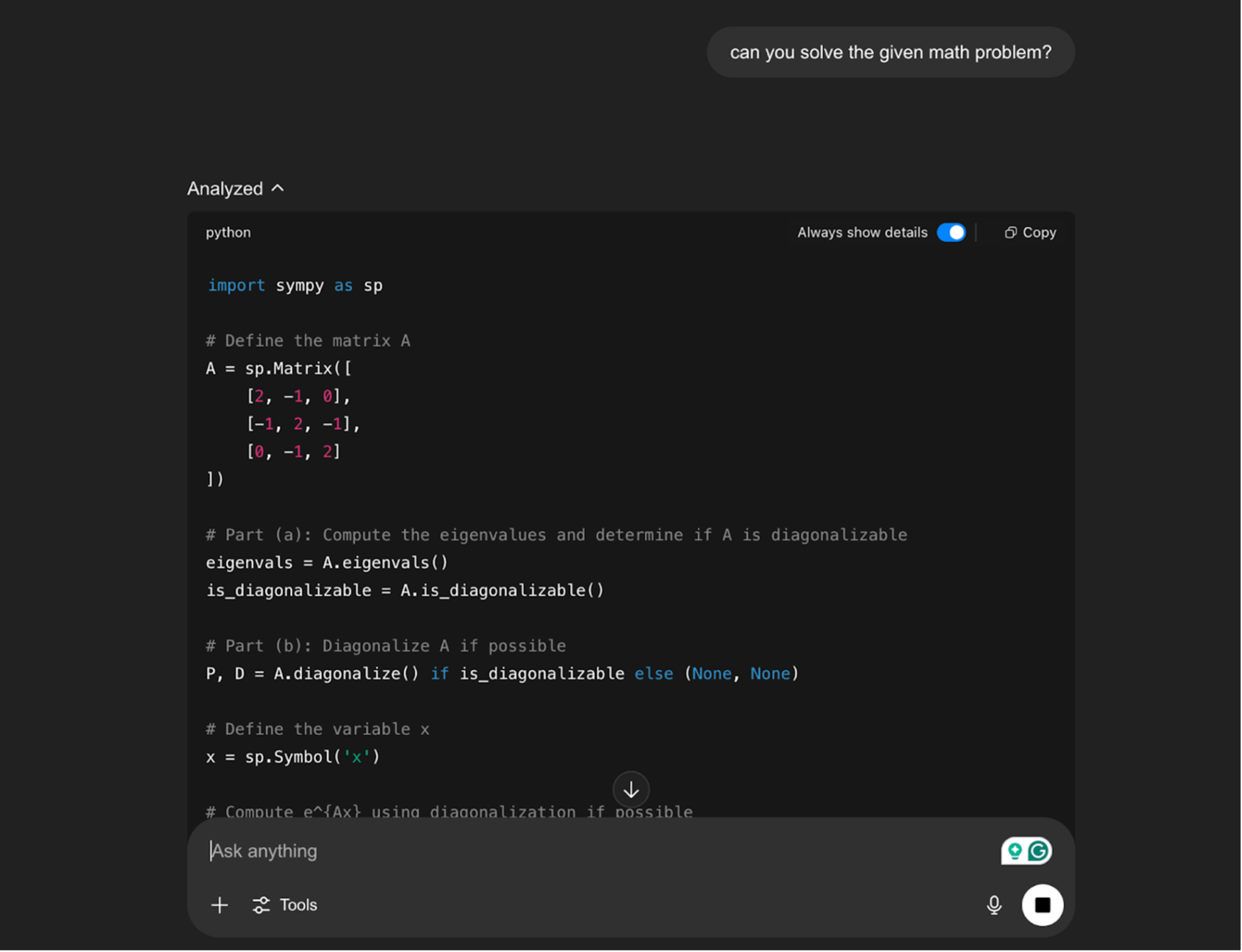 You can see I asked it to solve the given math problem above, and it started solving my query within seconds.