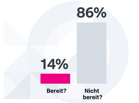 Nur 14 % der Unternehmen sind auf das Datenzeitalter vorbereitet. Von den unvorbereiteten 86 % geben nur 8 % an, dass sie die Vorbereitung noch rechtzeitig abschließen werden.
