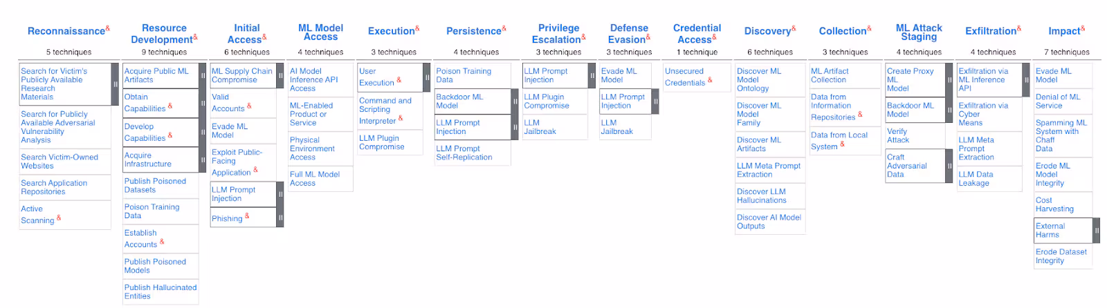 This framework as of January 2025, breaks down 14 tactics, 91 techniques, and 26 mitigation strategies. Some of the key adversarial techniques contained in this framework include: