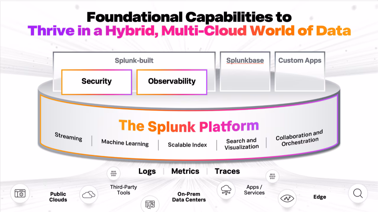 Splunk is the only data platform that can simultaneously serve the multitude of teams tasked with driving this shift across Security, IT, Observability, and more. The Splunk Platform mission is to help our customers — both on prem and in the cloud — understand what’s happening across this complex landscape. We believe that your data platform should work to help you not only successfully transform, but thrive as a business with visibility into all your data wherever it lives, the ability to make that data work for you at scale, and the ability to customize any solution you dream up.