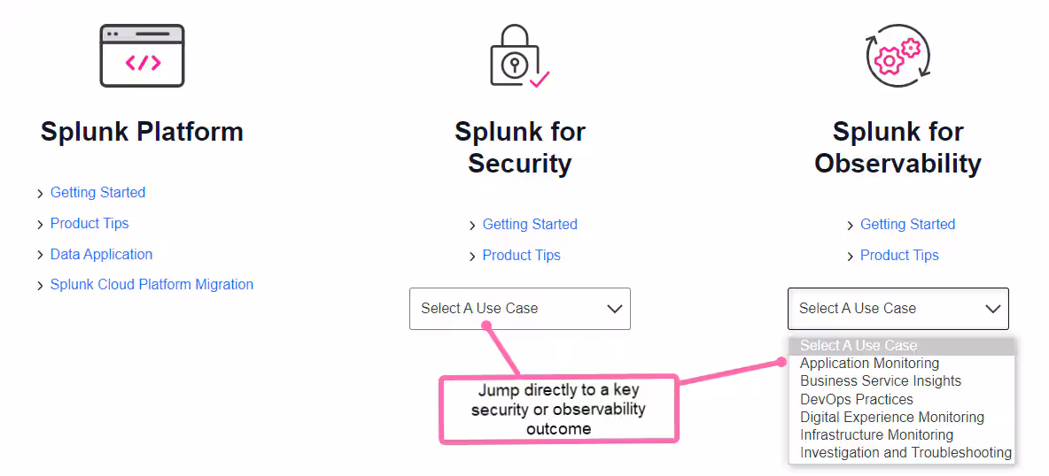 If you aren't sure what your use cases are, or if you want to discover new ones, the Data Application articles connect you to use cases that can be deployed with some of the most common data types and sources in use today. They also help you find what you need to get the data into your Splunk deployment by linking you to the official Splunk docs and useful add-ons in Splunkbase.