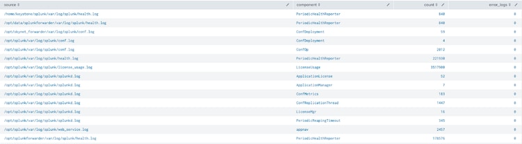 index=_internal | stats count count(eval(log_level="ERROR")) as error_logs by source component|xyseries source component count error_logs