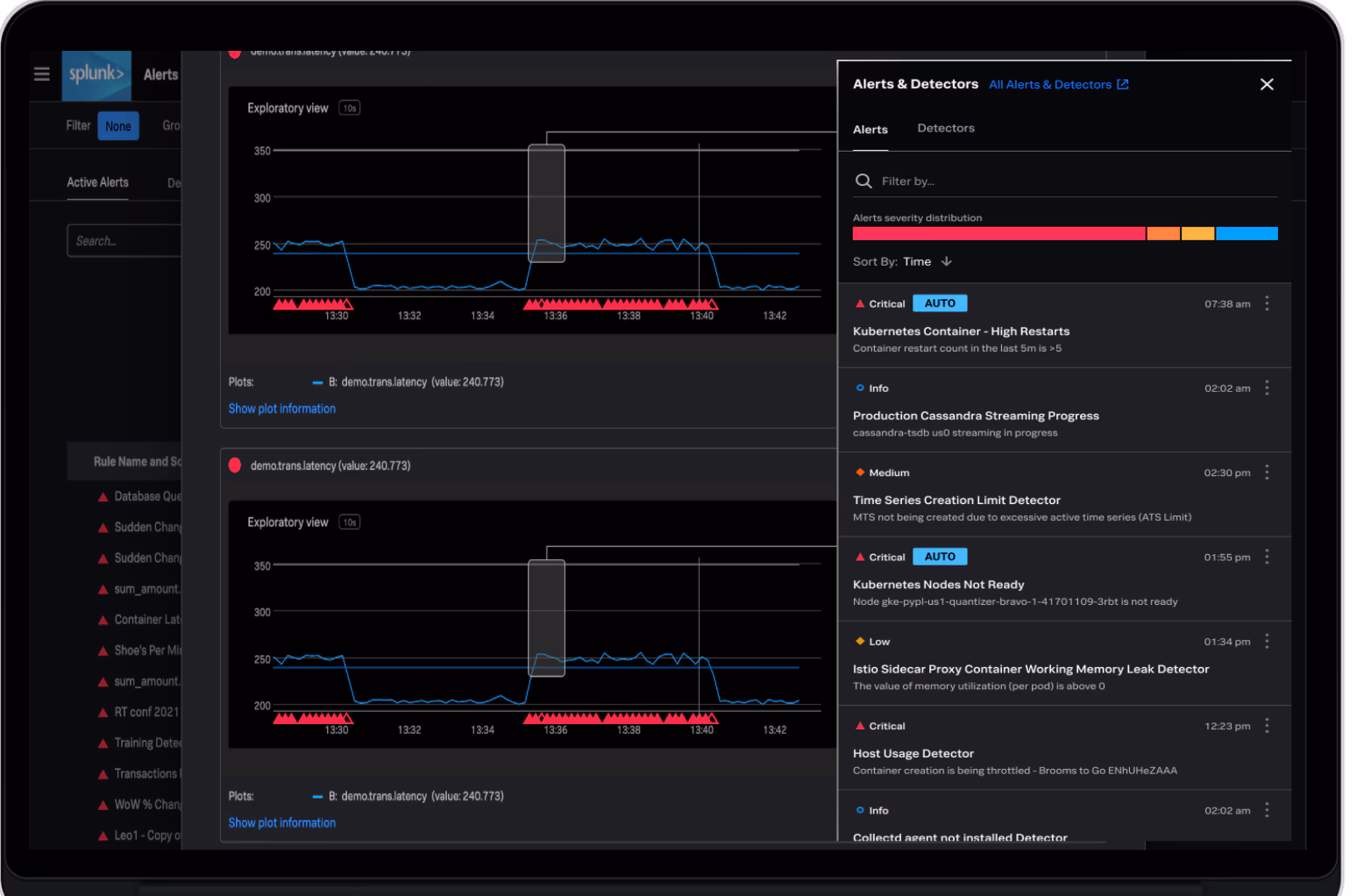 Splunk Infrastructure Monitoring automatically discovers and collects telemetry data for over 200 integrations to provide out-of-the-box visibility into the health and performance of the entire cloud stack. Alerts are a crucial part of the monitoring and troubleshooting workflow as they detect performance anomalies before they can impact the end-user experience. However, as you modernize to adopt cloud-native technologies into your stack, it’s not immediately clear which metrics matter the most to alert on or what thresholds should be set. SRE teams usually go through a period of experimentation during which it is possible to miss important alerts or get false positives leading to higher MTTR.