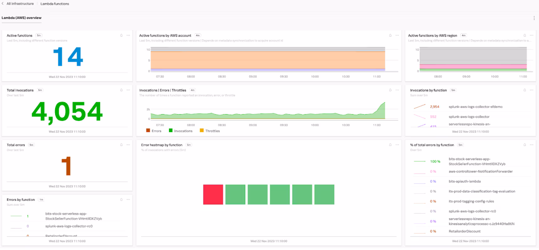 All your engineering teams will have access to valuable insights about your AWS services, such as an overview of Lambda functions or a heat map of errors in your EC2 instances.