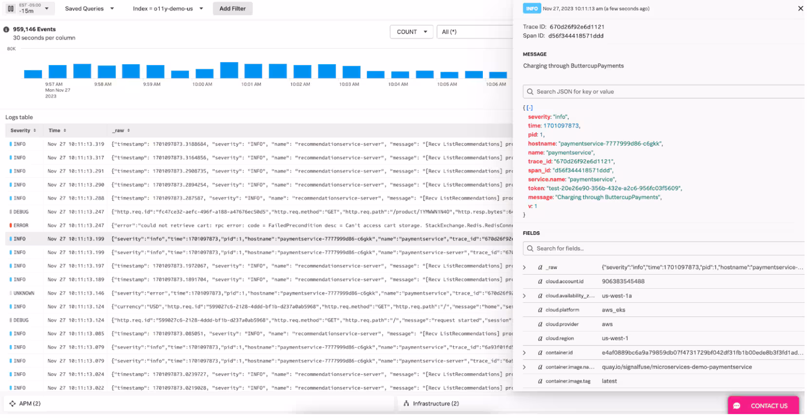 Visibility into your environment is incomplete without logs integration. Luckily, Splunk has you covered with Log Observer Connect. Splunk Log Observer Connect allows engineering teams to query logs in Splunk Enterprise or Splunk Cloud Platform within Splunk Observability Cloud so they can troubleshoot application and infrastructure behavior using high-context logs in the same view. Knowledge of SPL is not required, so users can perform codeless queries on Splunk Enterprise or Splunk Cloud Platform logs to detect the source of problems in their systems, and then jump to Related Content, such as APM services or infrastructure dashboards throughout Splunk Observability Cloud, in one click. Your DevOps teams can focus on logs that are important to them without having to sort through security, network, and miscellaneous logs.
