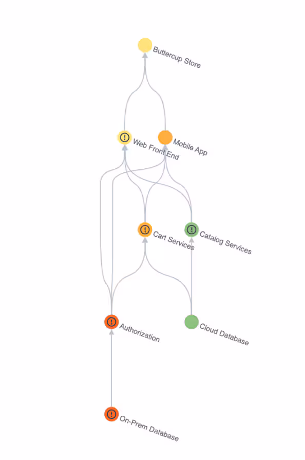 Repeat the process with technical stakeholders and the infrastructure components that support the business services and connect them being mindful that the resultant service tree doesn’t replicate an architecture diagram. The idea here is to create a dependency map that helps understand error propagation in the environment.