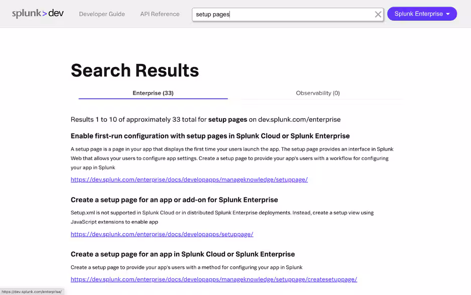 You may have noticed a recent update to the developer portal with site-wide search available when you want to search just the developer docs, and not everything on splunk.com. Just use the search tool at the upper right side of the main navigation bar to find your search term across the developer docs.
