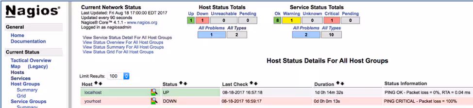 a. Create several “node down” alerts in Nagios (shut down the host or select failed check from the Nagios UI).