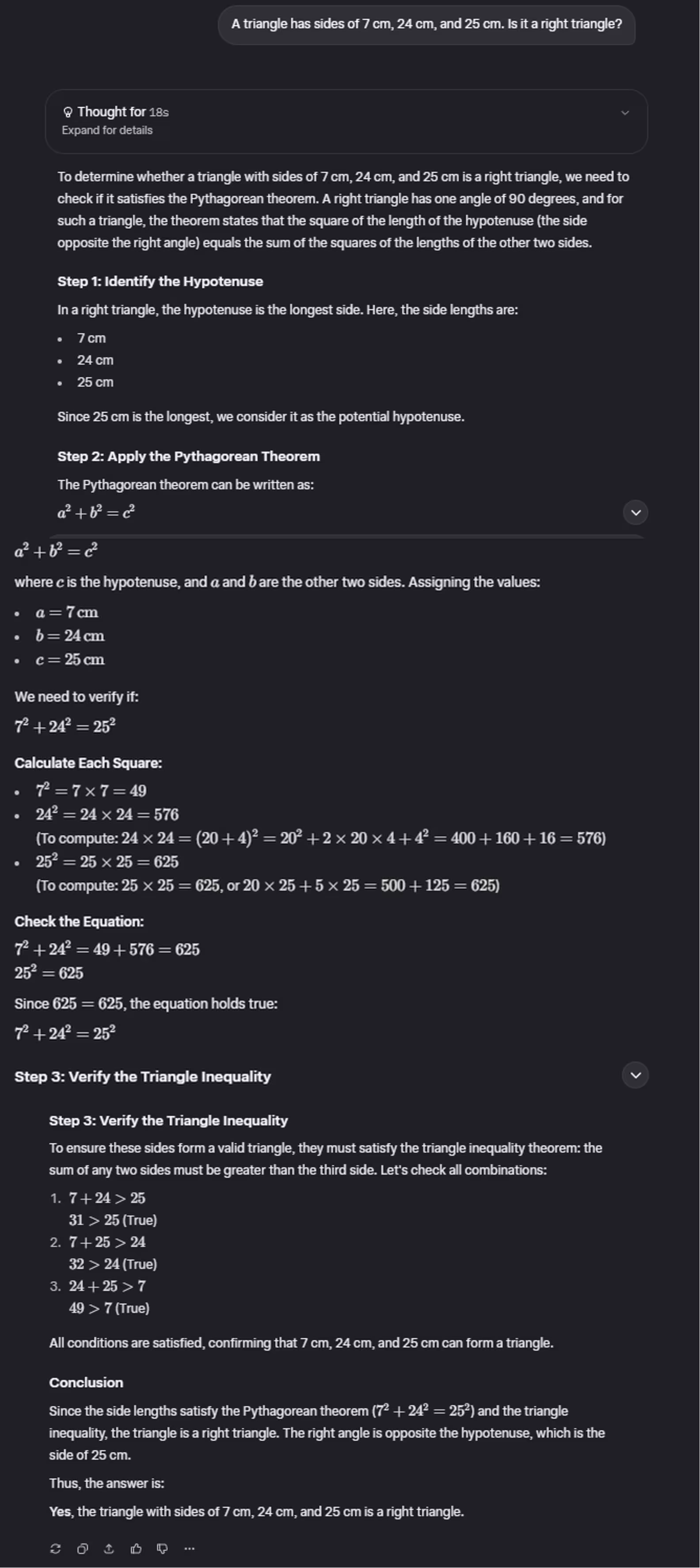 Claude paused for about two seconds before concisely explaining with a few steps. It wasn’t too long, but it was clear enough to follow along with its reasoning.