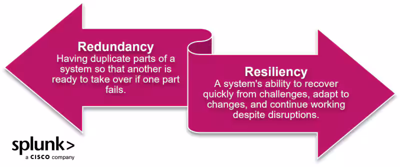 Interchangeability: People often think redundancy and resiliency are the same or serve the same purpose. But while both help make systems reliable, they tackle different issues. Redundancy is about having backups, while resiliency is about recovering and keeping going after a failure.