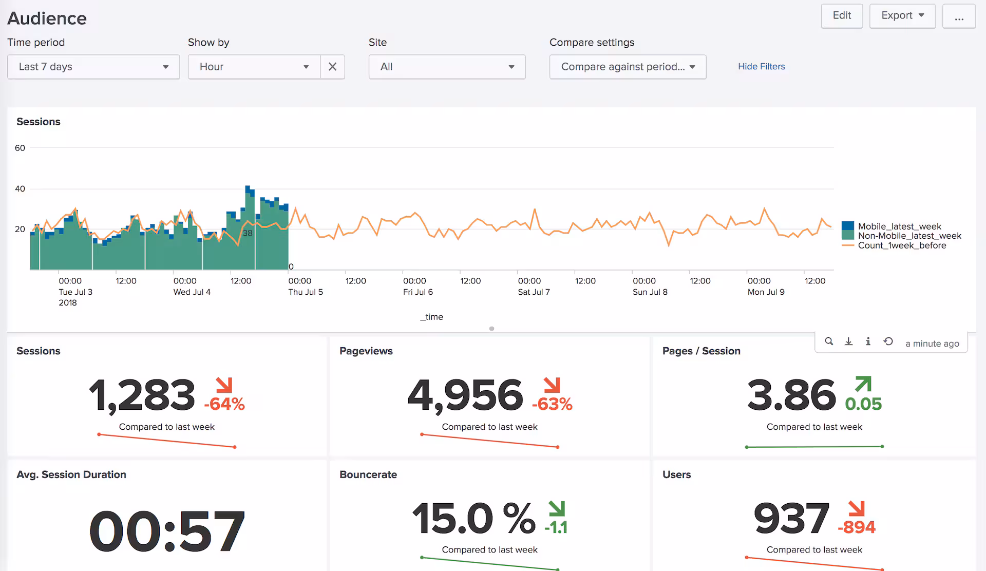 If your company relies on Google Analytics, Adobe Analytics, or any other common website analytics tool, Splunk can still help as a backup. Its an unfortunate reality that sometimes mistakes happen on production – including losing analytics tracking codes. If you have Splunk running, even without using Splunk App for Web Analytics, it can serve as a quick replacement for your normal website analytics tools if you are in a bind.