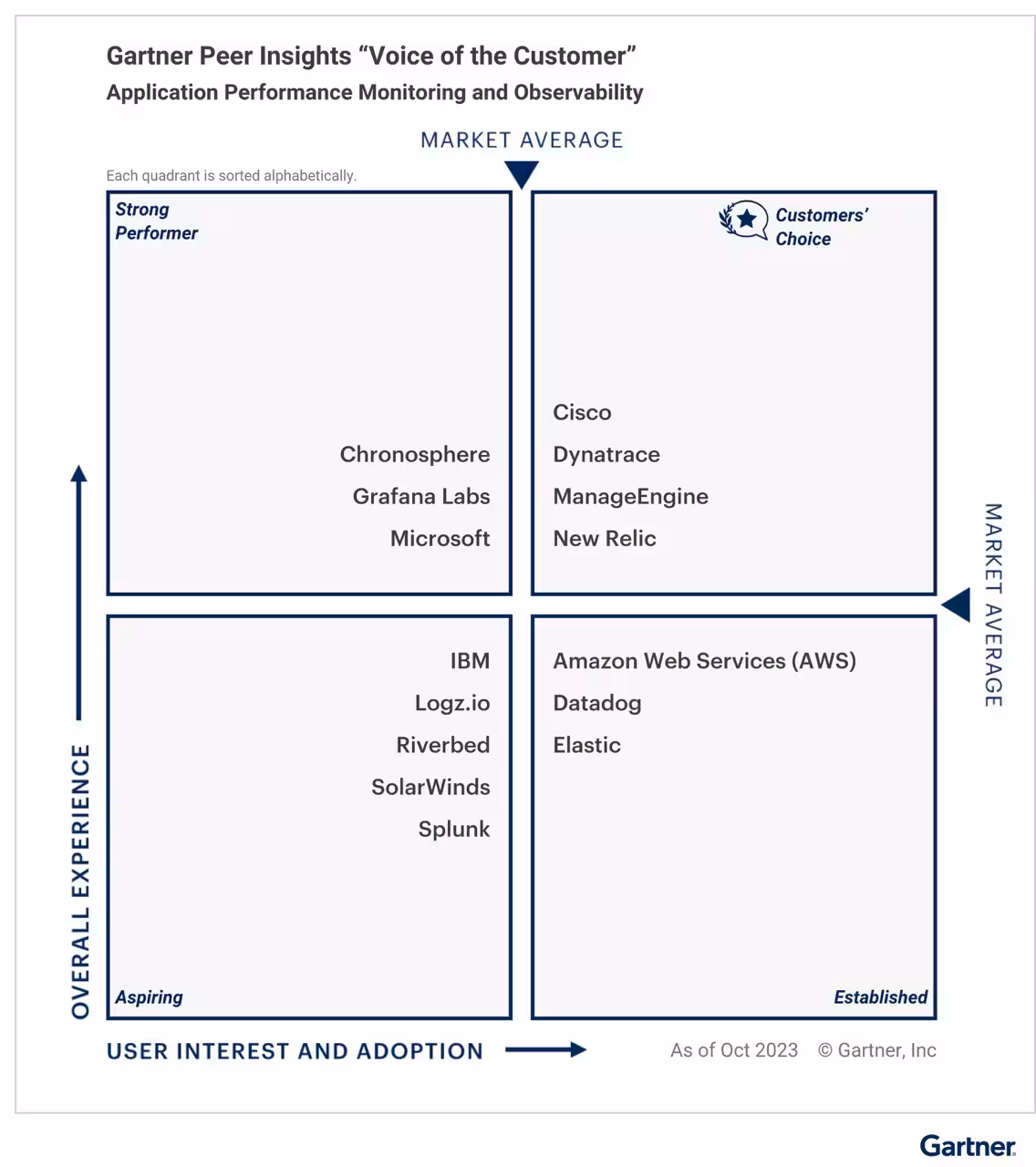 The report is based on nearly 2,000 reviews submitted by customers during an 18-month period between August 2022 and October 2023 and provides an aggregated perspective into customers’ experience implementing and operating their chosen observability offerings1. The “Customers’ Choice” recognition is only given to those vendors who meet or exceed both the market-average overall experience and market-average user interest and adoption.