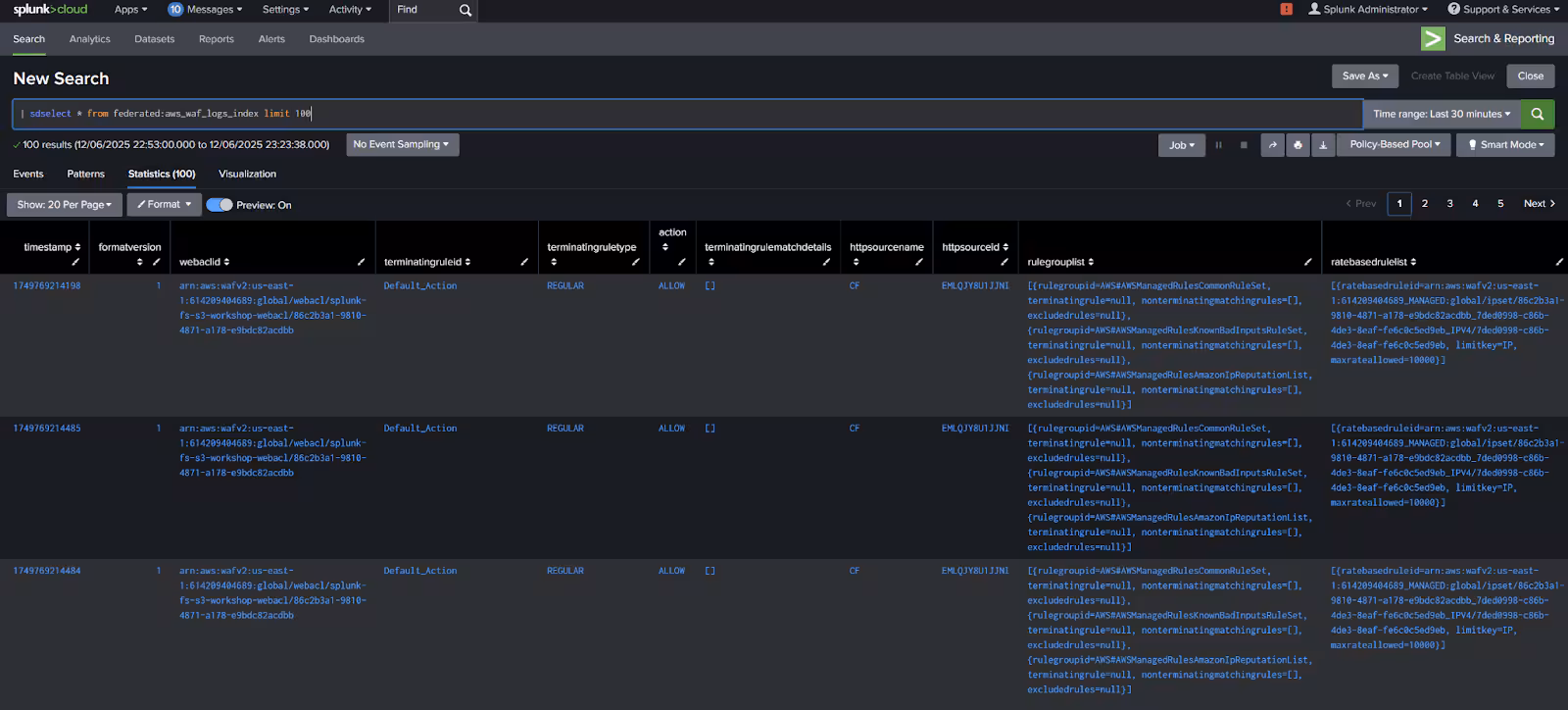 | sdselect * from federated:aws_waf_logs_index limit 100