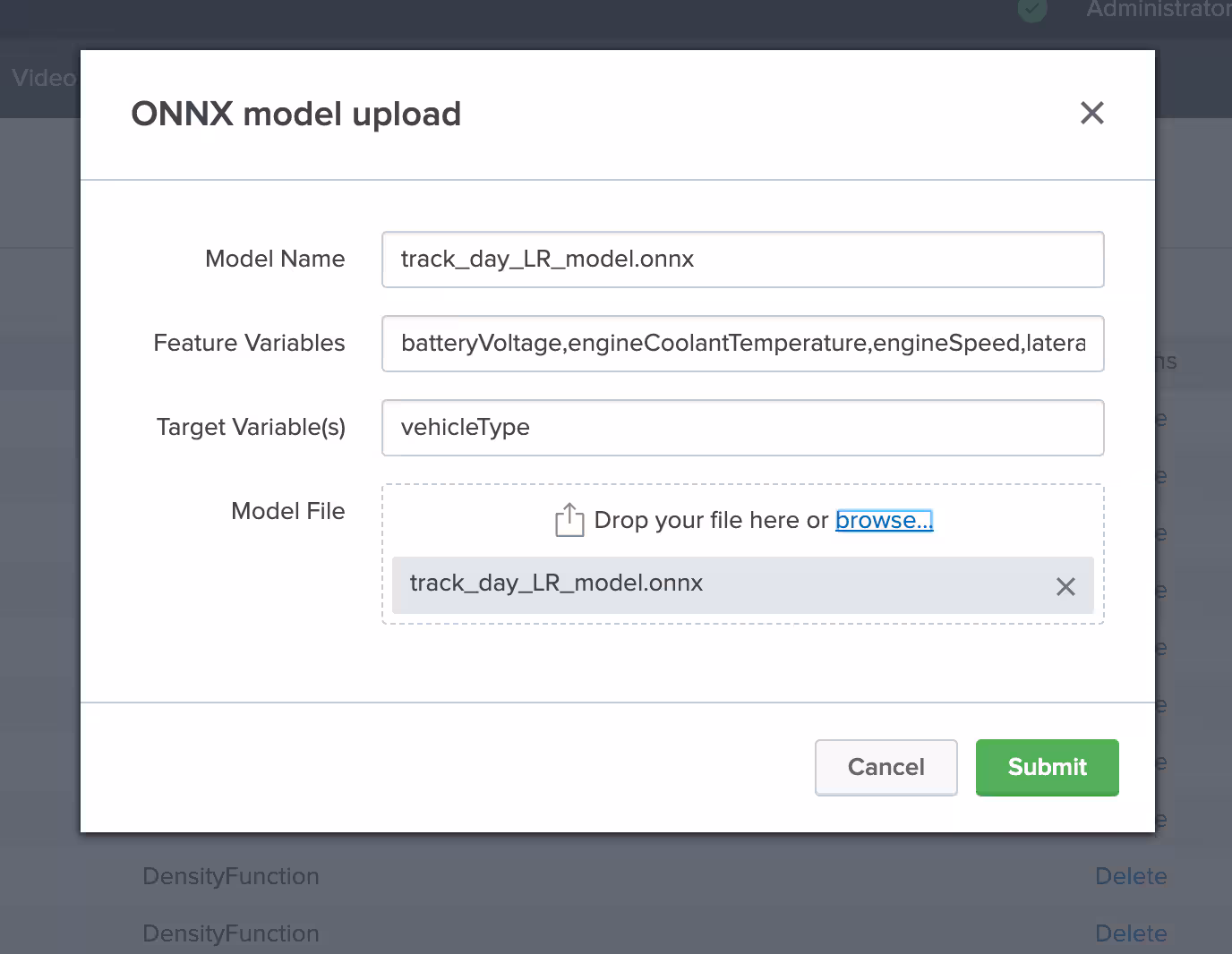 The UI for uploading an external model is simple and intuitive. It requires a few parameters from the user that are helpful for verification of the model file and are also used during model inference.