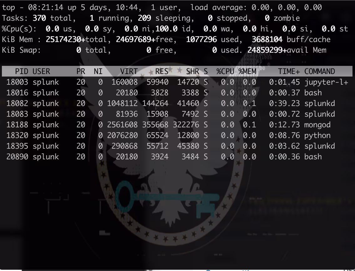 Once Splunk Enterprise has stopped, you can use Docker to install Jupyter Notebook and reassign the splunk web & splunkd ports to the container.