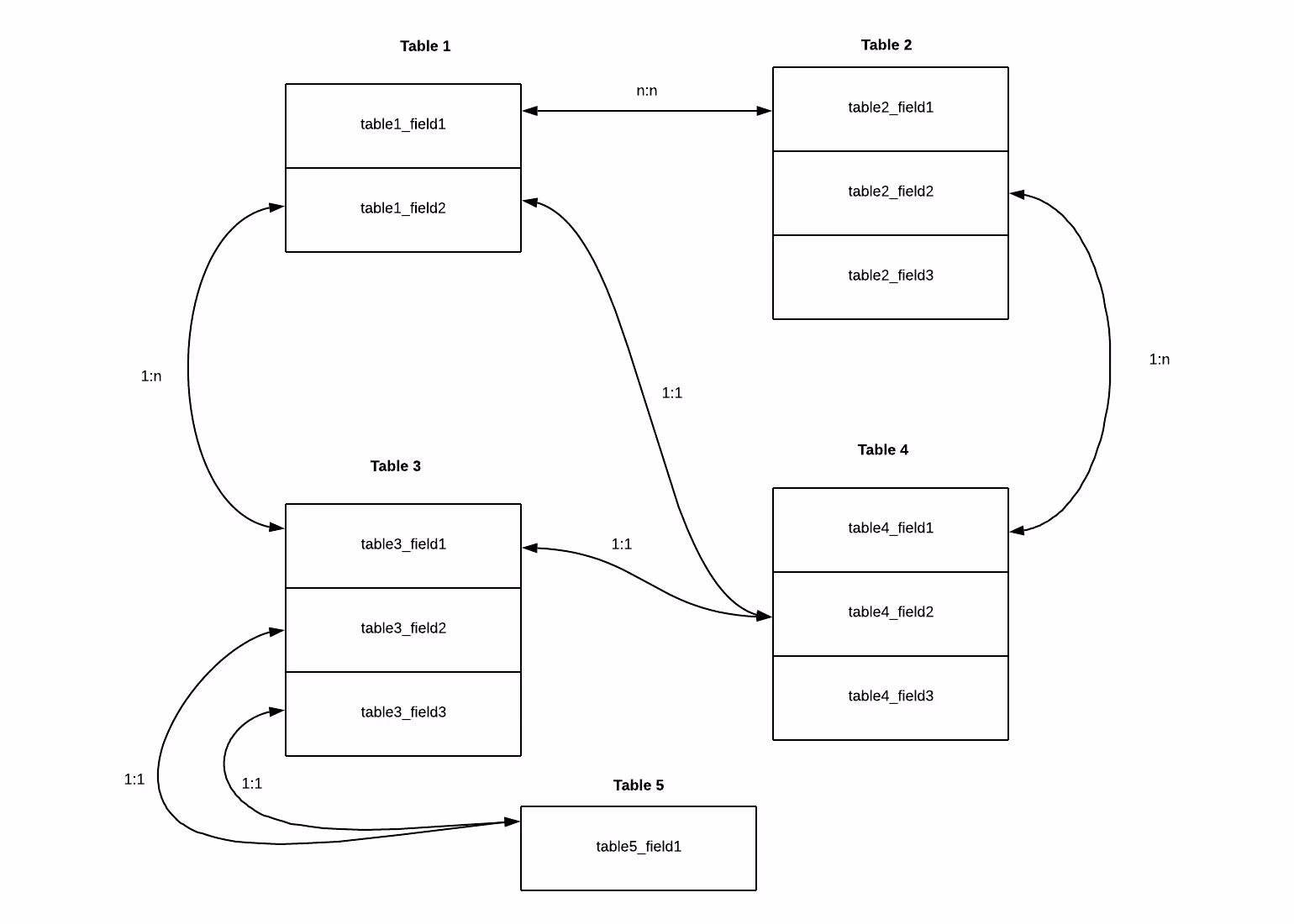 Each data source will be an SQL-type table. After analyzing the relationship between tables the correlations will be performed. Note an example of relationships between fields of different tables in a SQL-type table.