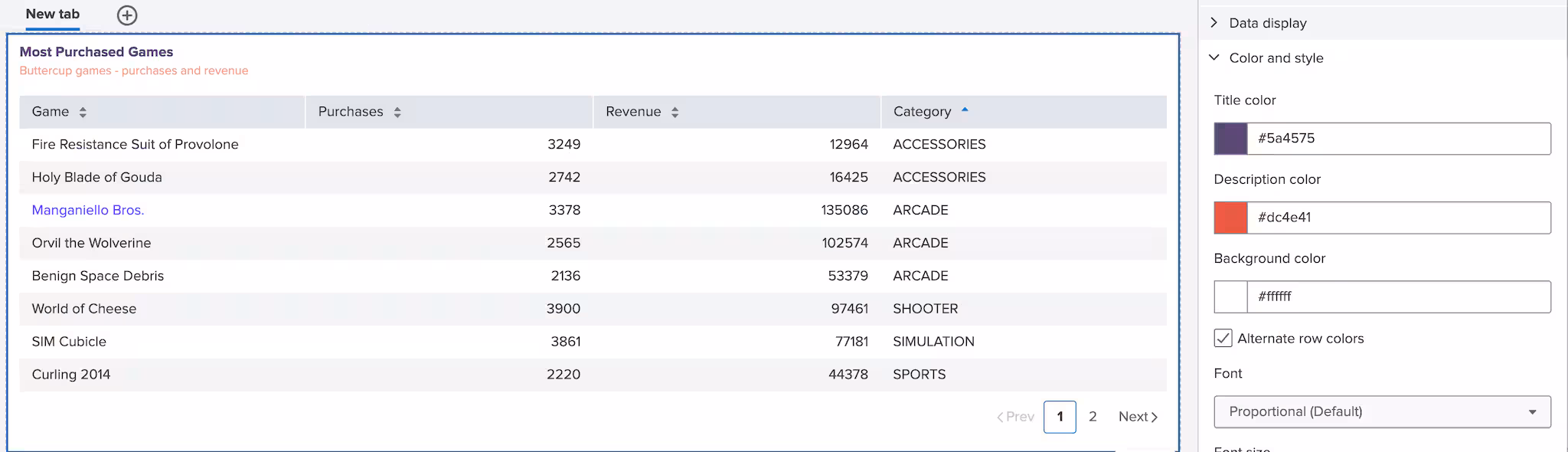 We also added wildcard ‘*’ support for dynamic coloring, allowing more flexible matching of values in table columns. In this example, all cells in the “Game” column that start with the letter “M” will be colored purple.