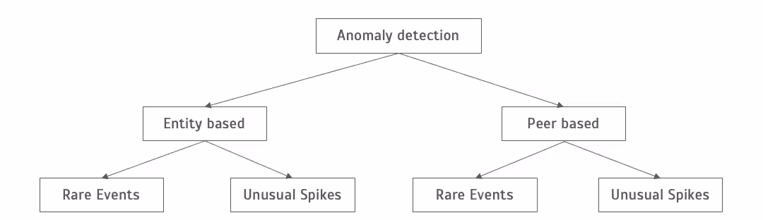 Anomaly detection comprises entity-based anomaly detection and peer-based anomaly detection. Entity-based anomaly detection involves identifying entities displaying behavior that deviates from their typical patterns (e.g., time), technically termed as a deviation from the entity's baseline. Peer-based anomaly detection operates on a similar principle but establishes a baseline for the peer group to which the entity belongs. Entities involved in comparable job functions or activities are grouped together, with an entity possibly belonging to multiple peer groups. For instance, users reporting to the same manager might form one peer group, while servers hosting specific applications could comprise another. Anomaly detection creates baselines for both individual entities and peer groups, identifying uncommon occurrences or unusual surges in comparison to their established historical behavior or baseline. These baselines, crafted from historical data spanning usually between 30 to 365 days, serve as the foundation for anomaly detection.