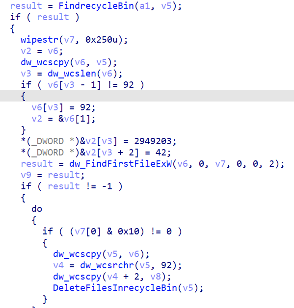 Aside from encrypting files, killing processes, services, and elevating privileges it will also delete files in the recycle bin, as seen in the following screenshot.