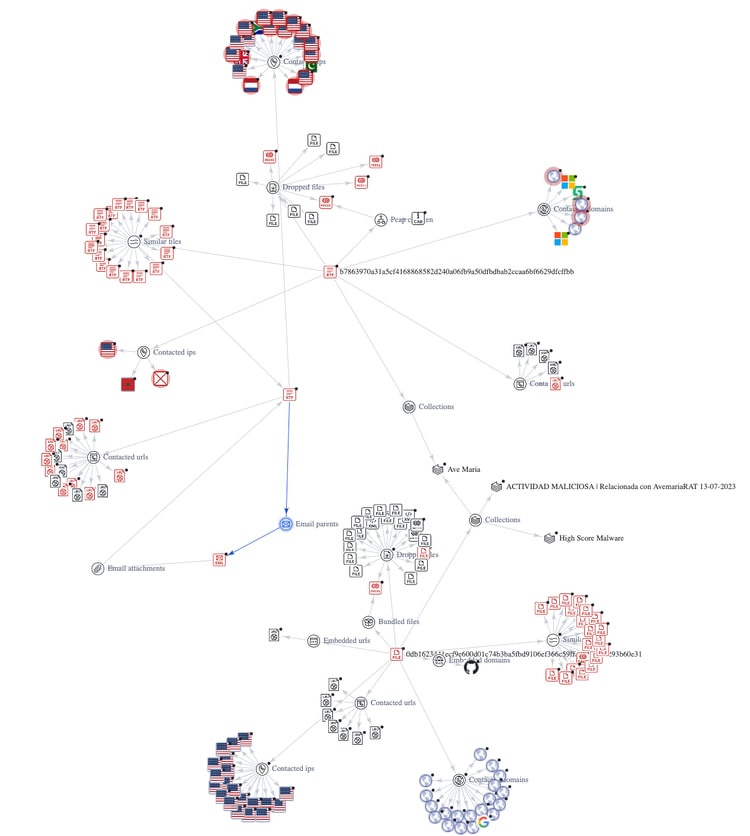 The VT diagram presented below vividly illustrates a malicious phishing campaign orchestrated by the Ave Maria RAT malware. This campaign encompasses an exploited .rtf file, strategically designed to initiate the download of the authentic RAT onto the compromised host.