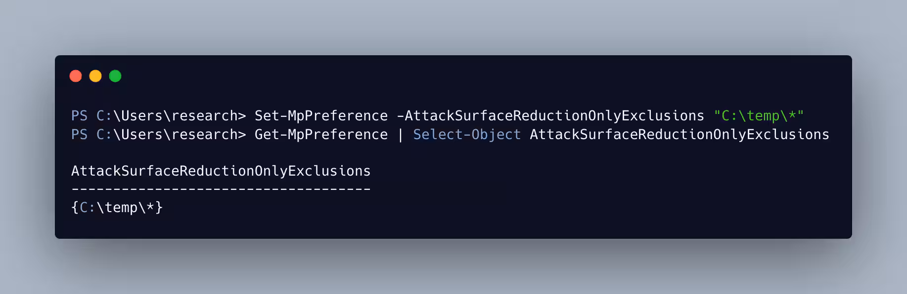 Get-MpPreference | Select-Object AttackSurfaceReductionOnlyExclusions