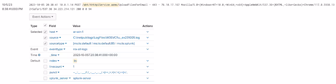 As outlined above, the vulnerability targets the WS_FTP Server Ad Hoc IIS module. Prior work by the STRT related to IIS components and inventorying IIS Modules may be found in our blog and on research.splunk.com. This application, WS_FTP — which is composed of several modules including the Ad Hoc transfer module — requires the installation of Microsoft IIS and several IIS extensions in order to run. According to at least one Proof of Concept, the attack was replicated on an instance running Microsoft IIS. Since Splunk Attack Range does not collect IIS logs by default, we had to set up Microsoft IIS log collection. The following steps were followed: