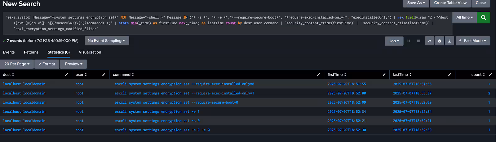 `esxi_syslog` Message="*system settings encryption set*" NOT Message="*shell.*"