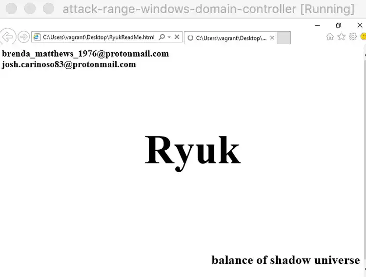 Then we ran Ryuk on our Windows 2016 Domain Controller: