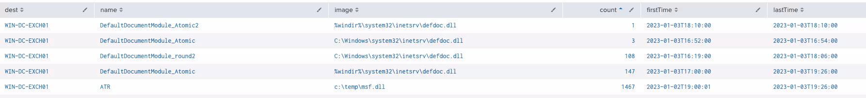 Now that we have simulated adversary tradecraft using AppCmd and PowerShell cmdlets for adding IIS modules or disabling HTTP logging, we can showcase some additional hunts and the security content that assists defenders in identifying this Atomic testing.