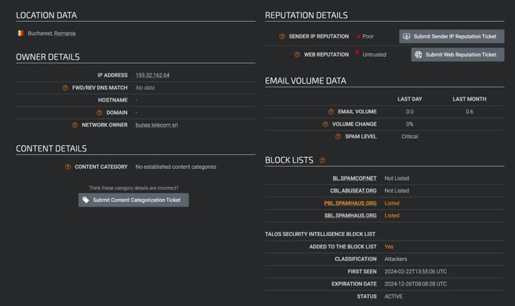 Number of IP addresses is over 4K, specifically targeting Internet Infrastructure providers in the west coast of the U.S and China