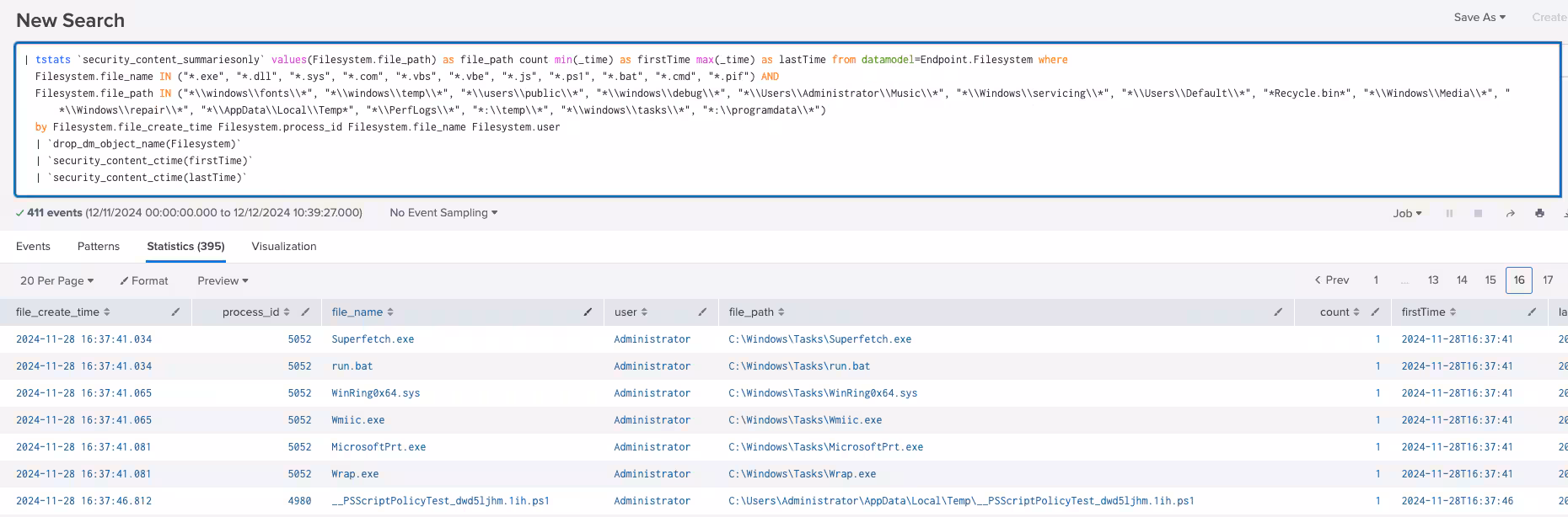 file_path count min(_time) as firstTime max(_time) as lastTime from