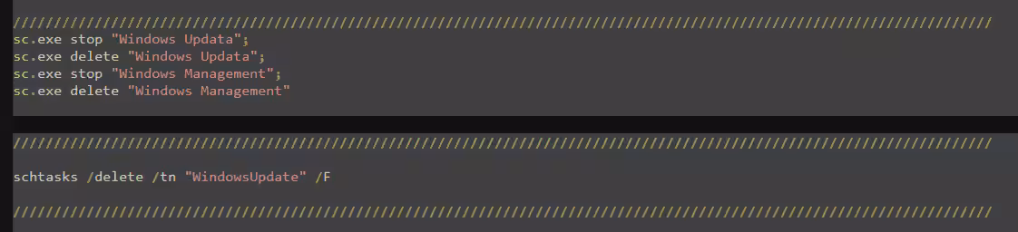 Beyond the defense evasion techniques, the executable further modifies the access permissions of the C:\Windows\Tasks\ directory using Windows utilities takeown and icacls.exe. This directory serves as the drop location for additional files used during the execution process to install a coinminer and information-stealing malware.