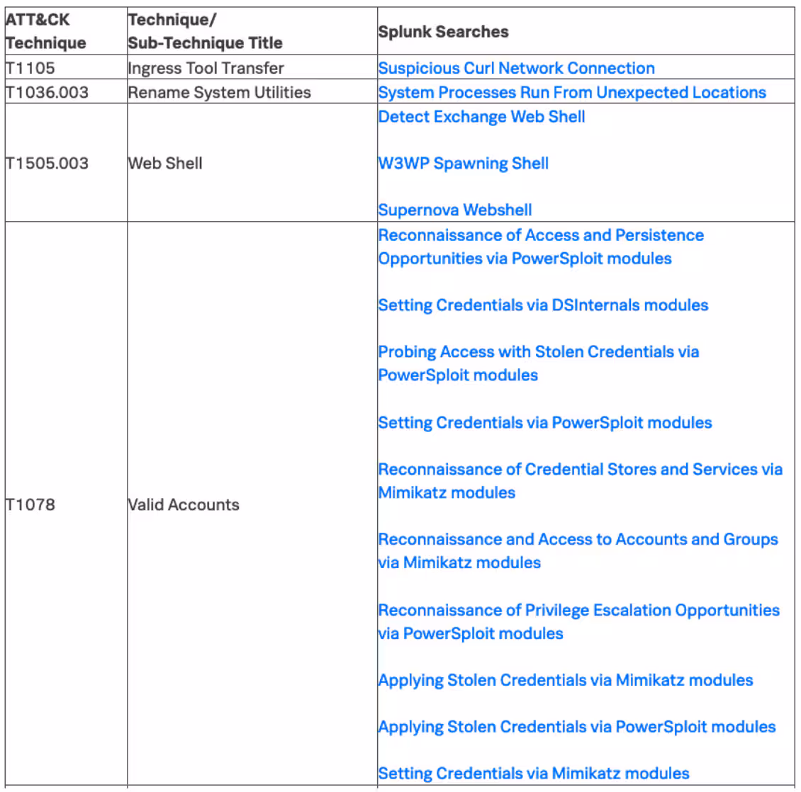 The SURGe team is lazy. We like to replace the mundane with scripts or some form of automation. In each rapid response blog we include a table that lists relevant MITRE ATT&CK techniques as well as detections from Enterprise Security Content Updates (ESCU). At first, this was a manual task where a SURGe team member identified MITRE ATT&CK techniques, then searched through ESCU to find our detections. Needless to say, this was a time-consuming process, albeit worth the effort to ensure we could provide actionable information to our readers.