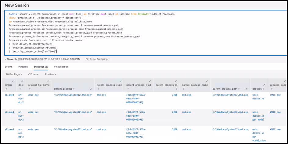 where `process_wmic` (Processes.process="* diskdrive*")