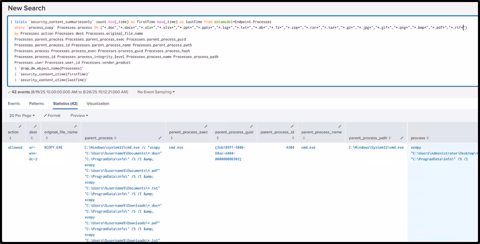 where `process_copy` Processes.process IN ("*.doc","*.docx*","*.xls*","*.xlsx*","*.ppt*","*.pptx*","*.log*","*.txt*","*.db*","*.7z*","*.zip*","*.rar*","*.tar*","*.gz*","*.jpg*","*.gif*","*.png*","*.bmp*","*.pdf*","*.rtf*")