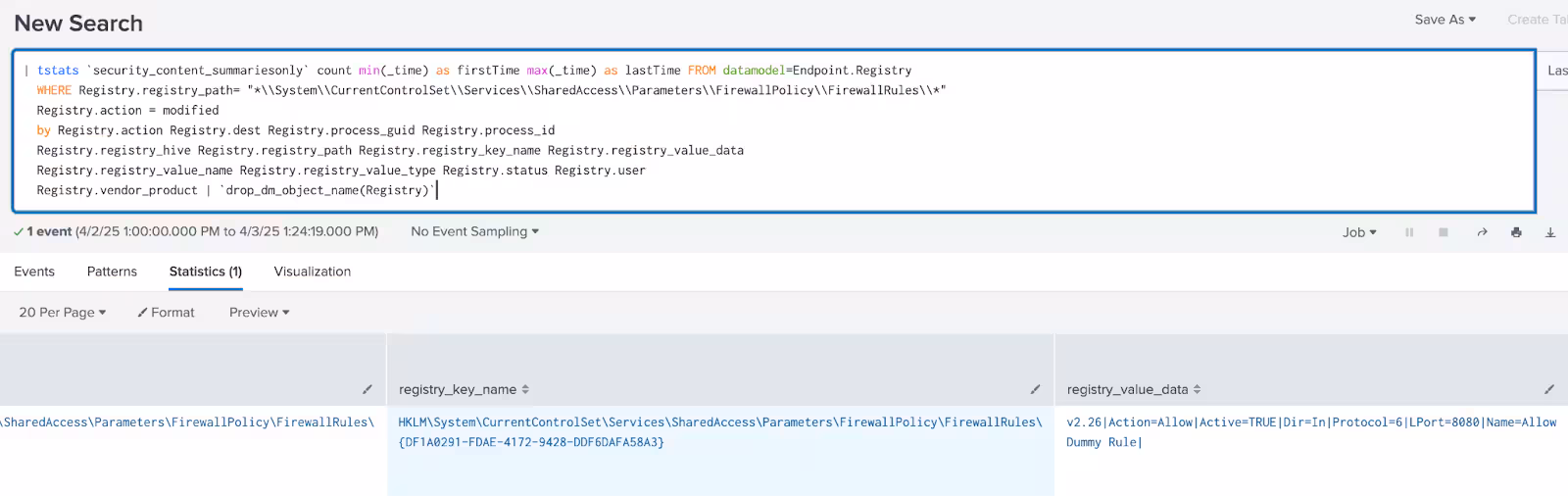 Figure 8: Windows Modify Registry to Add or Modify Firewall Rule Detection