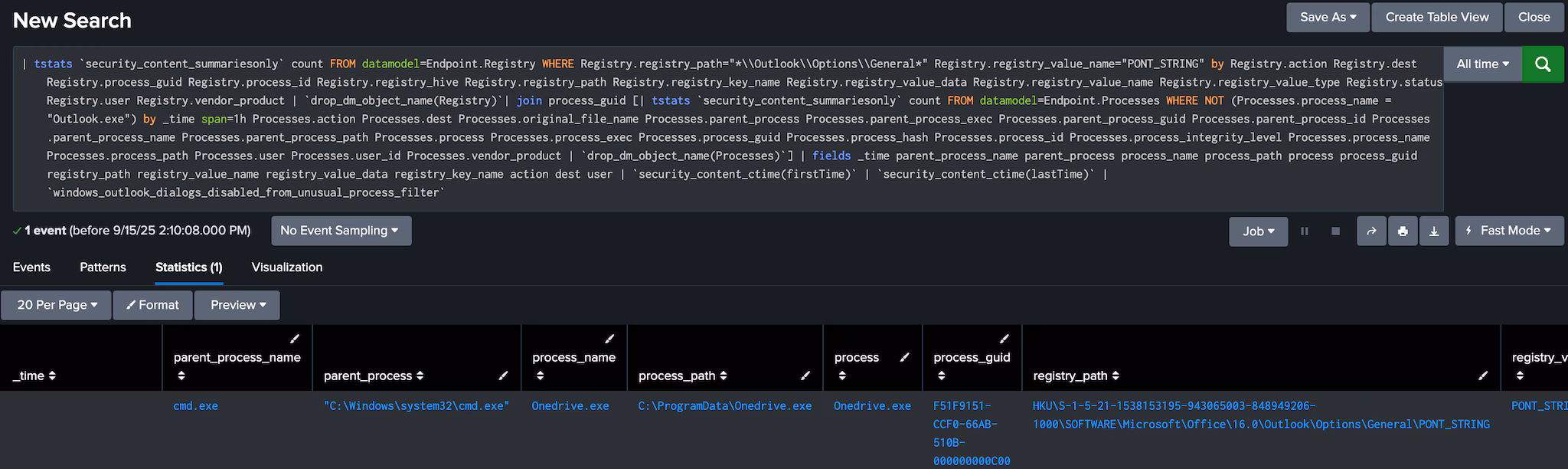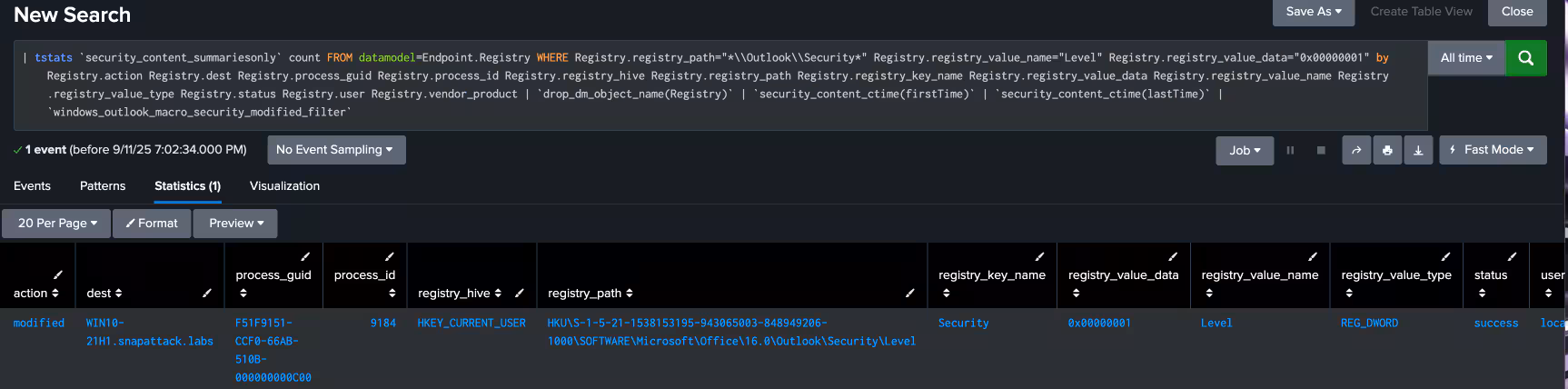 WHERE Registry.registry_path="*\\Outlook\\Security*"