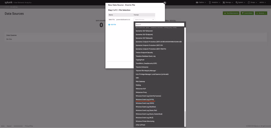 UBA 5.4.2 resolves onboarding issues caused by updated XML-formatted Windows logs. If your Windows logs are in XML format, follow these steps to set up a data source in UBA for processing PowerShell XML events from Splunk.