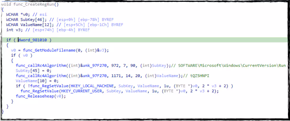 If the “arn” field in its configuration file is enabled, it will create an autorun registry on the compromised machine as a persistence mechanism.