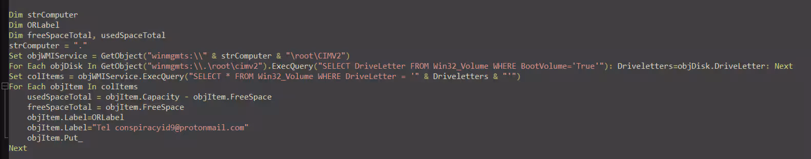 Figure 07 depicts the code snippet from the ShrinkLocker malware, illustrating how it modifies the disk label on the compromised host. This alteration includes embedding an email address through which the user can potentially contact the attacker to discuss file recovery options.