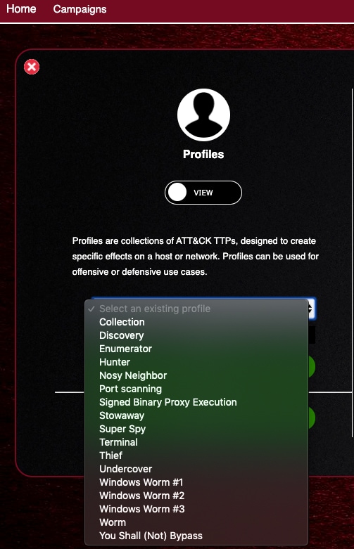 Once a profile has been selected — and knowing the actions that will be performed on agent based on profiles — we must select the menu operations, which basically shows parameters that can be applied to actual abilities from adversary profile (e.g. the level of obfuscation when executing against targeted agent/system).