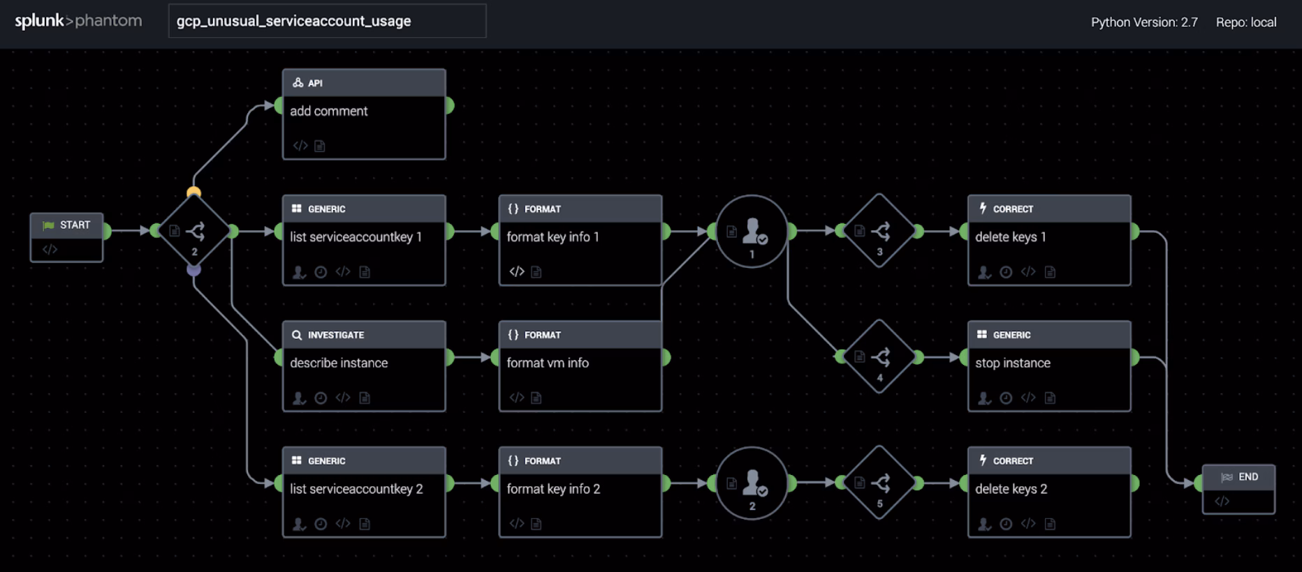 In today’s new Splunk SOAR (formerly known as Splunk Phantom) Community Playbook, we will show how a Splunk Enterprise search can trigger automated enrichment, an analyst prompt, and rapid response actions to prevent damage caused by malicious account access. This use case relies on GCP audit logs ingested into Splunk using Cloud Logging. For details on how to set this up, see our recent blog post, "Elevate Your Cloud SecurityPosture with Splunk and Google Cloud," on the Splunk Enterprise and GCP integration.