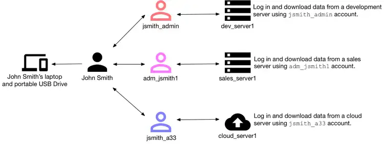 A central source of record for accounts provides valuable contextual information, like Active Directory (AD), but we can go a step further. An HR System provides a layer of enrichment that a standard account system usually doesn't, especially when tying multiple accounts to one human being (entity).