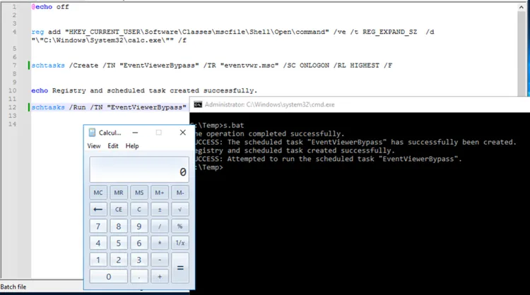 Figure 26: UAC Bypass and Persistence via eventvwr Simulation