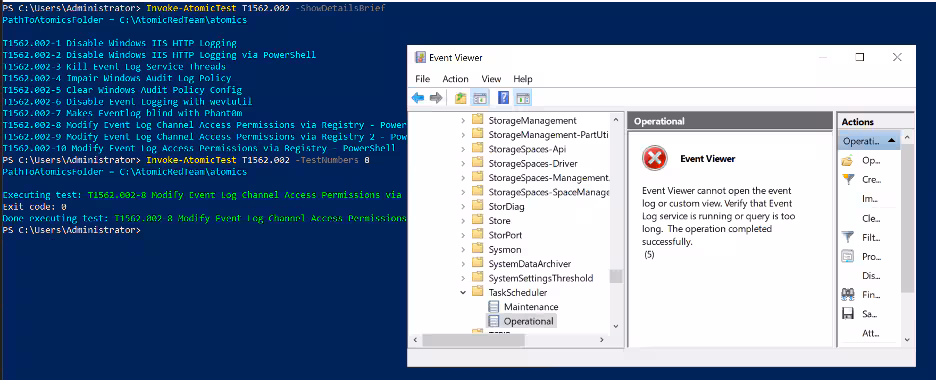 Figure 8: Modify Event Log Channel Access Permissions via Registry 2 - PowerShell Atomic Test