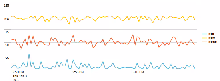 This may not be too impressive, but it does get better. You may next want to find the min, max, and mean of your temperature values over time. Seeing how quickly this can be created in a graph makes it worthwhile with the following functions used with timechart.