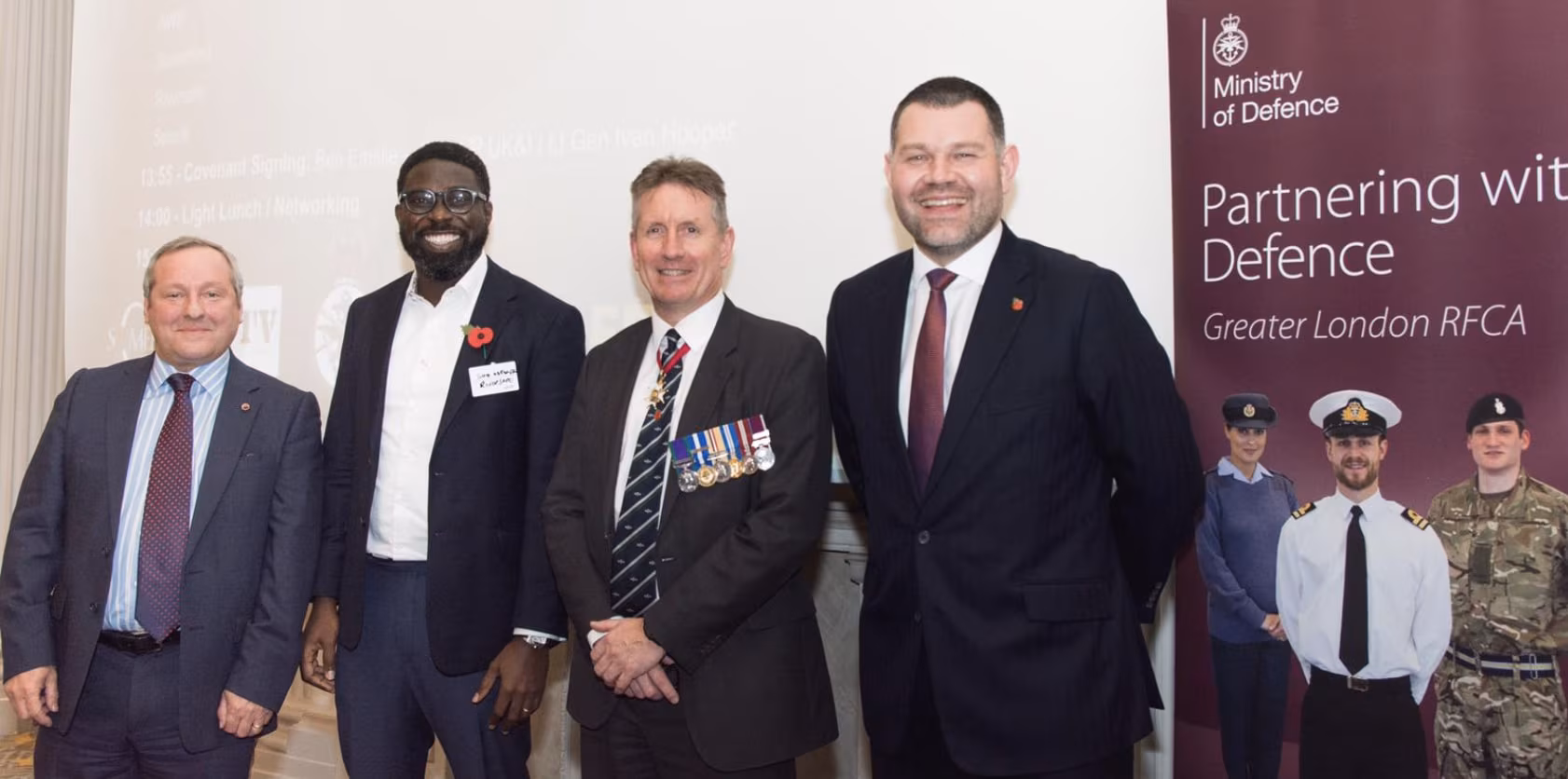 Right to Left - Ben Emslie (Splunk), Lt Gen Ivan Hooper, Suid Adeyanju (Riversafe) & Andy Davies (Somerford Associates) at the signing of the Armed Forces Covenant.