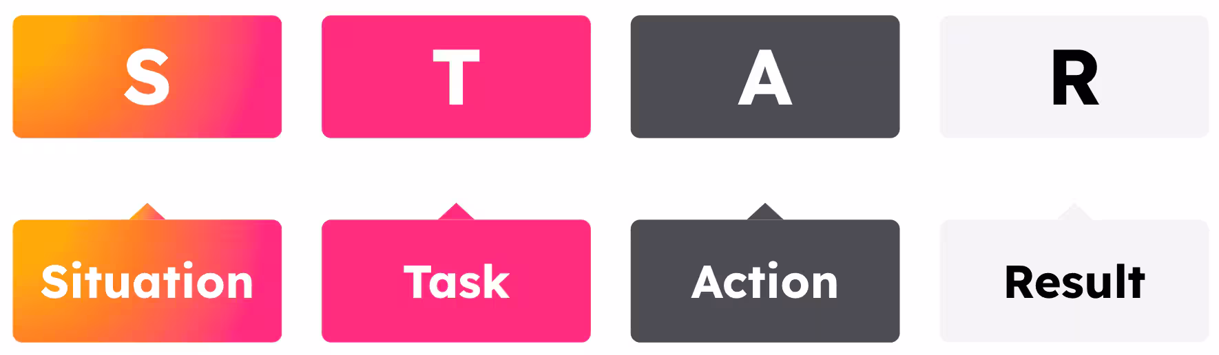 STAR stands for Situation, Task, Action, and Result. When answering a behavioral question in an interview, you should cover each of these components to keep your response clear.