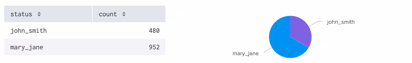 If you’d like to add a second dimension the `chart` command is useful here. For example, comparing sales across products, with an additional breakdown by person: