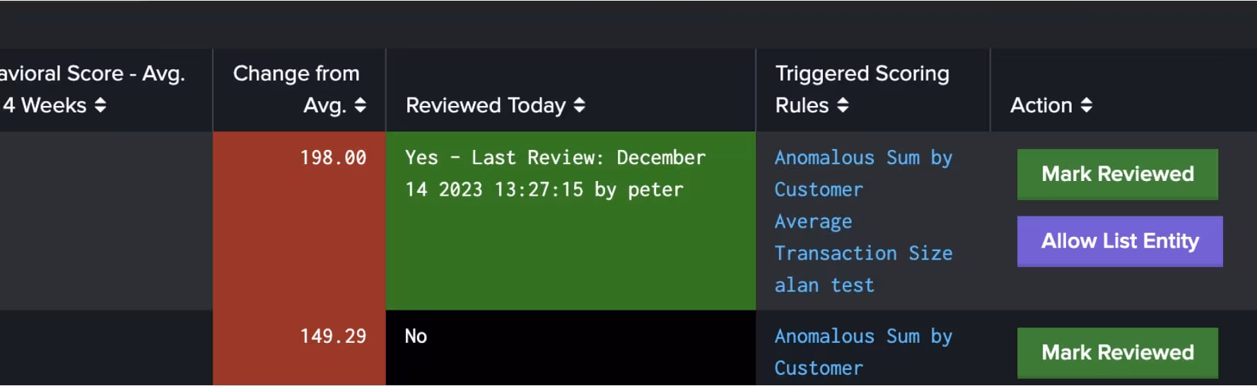 - Display of the reviewer who marked a given entity as “reviewed” on the entity behavioral scores investigative dashboard, allowing easier communication and documentation of investigations undertaken as a team.